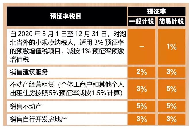 小規模及適用簡易計稅的一般納稅人增值稅稅率表