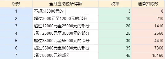適用稅率:以全年一次性獎金收入除以12個月得到的數額對照月度稅率表確定: