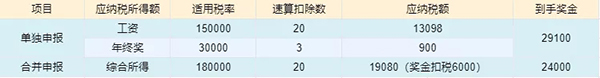 年終獎選擇單獨申報更節稅。