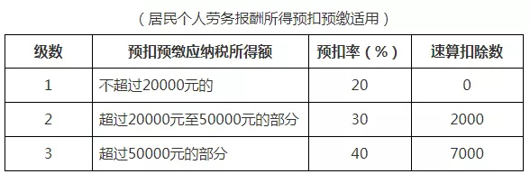 居民個人勞務報酬所得預扣率表