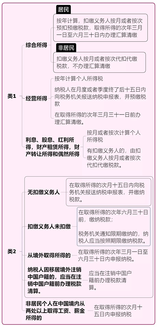 ?分項所得:經營所得;利息、股息、紅利所得;財產租賃所得;財產轉讓所得;偶然所得。